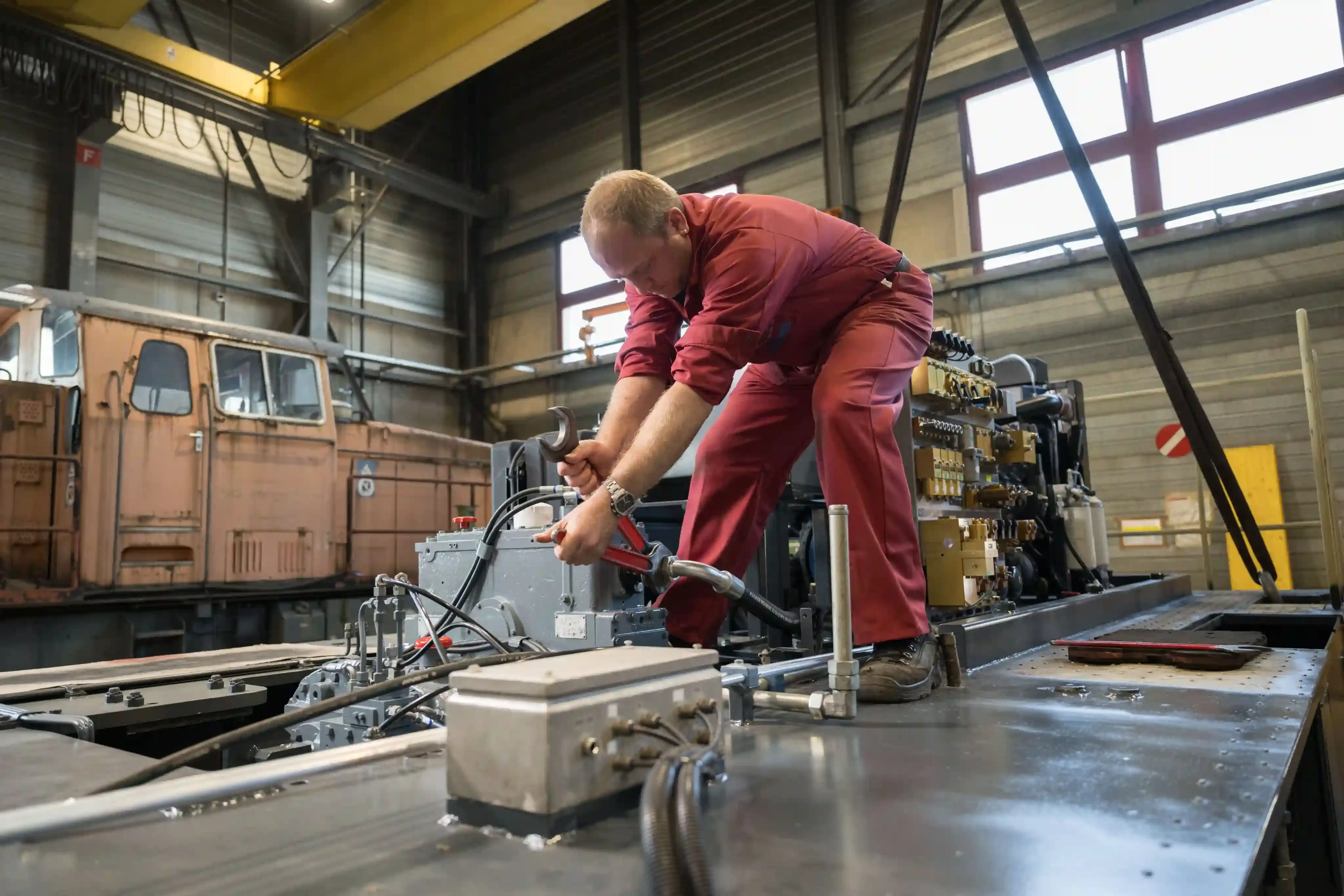 Die Chassisfarbe wird dabei aufwändig mittels Luftnageltechnik abgetragen. Nach dem anschleifen erfolgt eine Grundierung und erst dann der Deckanstrich im Rollverfahren (meist in RAL 7016 oder RAL 7031). Dabei werden auch die gesetzlich vorgeschriebenen Warnstreifen bei den Frontplatten (vorne und hinten) sowie Handläufe lackiert (meist in gelb).